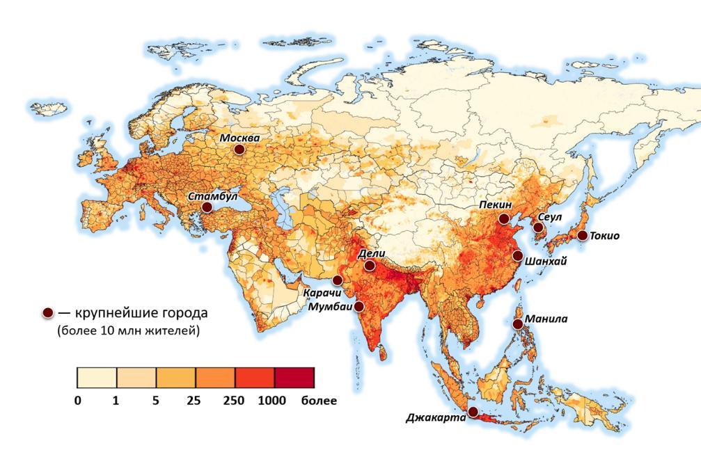 - Большая часть населения Евразии проживает в Европе, Юго-Восточной и Южной Азии.