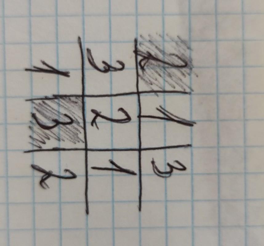 Сафия хочет заполнить таблицу так, чтобы в каждой строке и в каждом столбце числа 1, 2, 3 встречались по одному разу. Чему будет равна сумма чисел в закрашенных кле