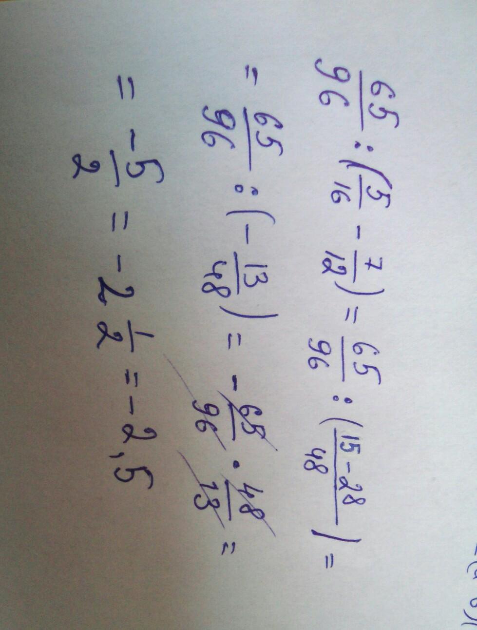 65/96:(-13\48)=65\96*(-48\13)=-5\2=-2 1\2
