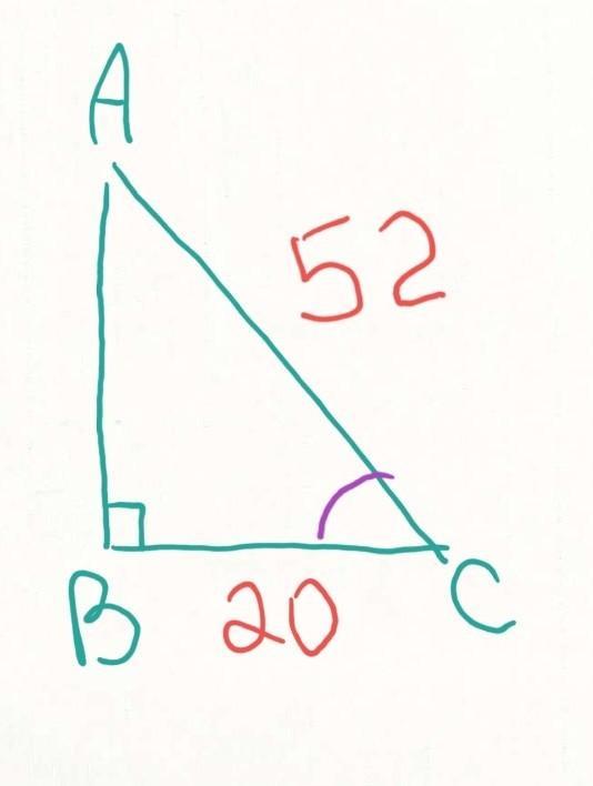 Дан треугольник ABC, в котором ∠B=90°, кроме того, известны его стороны: BC=20 см, AC=52 см. Найди tgC.