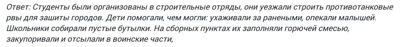 учились хорошо делала дз. вот гогда была война школьники помогали изготавливать еду для солдат