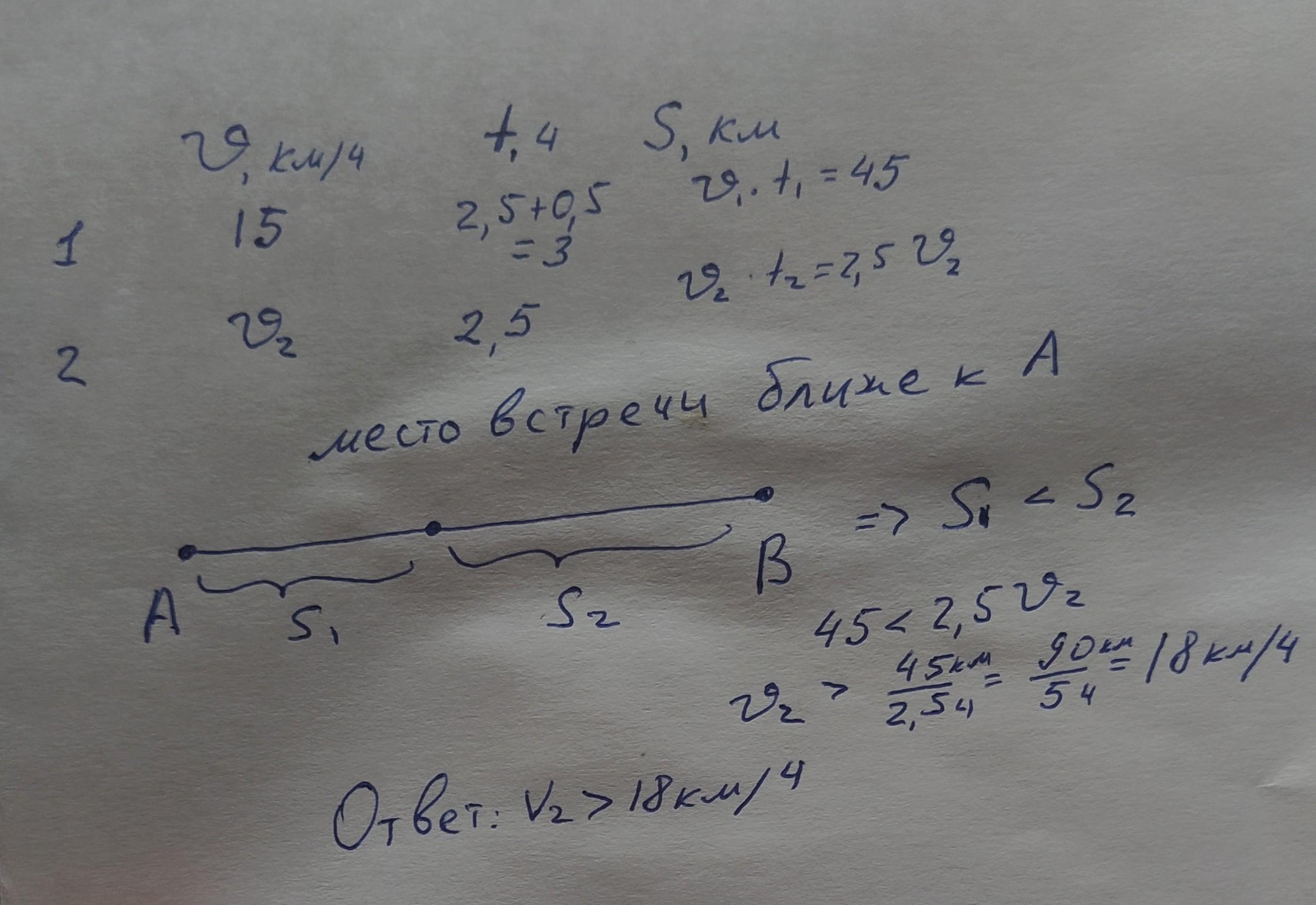 другой велосипедист. С какой скоростью должен ехать второй велосипедист, чтобы встретиться с первым через 2 часа 30 минут после своего выезда в точке, расположенной ближе к пункту А?