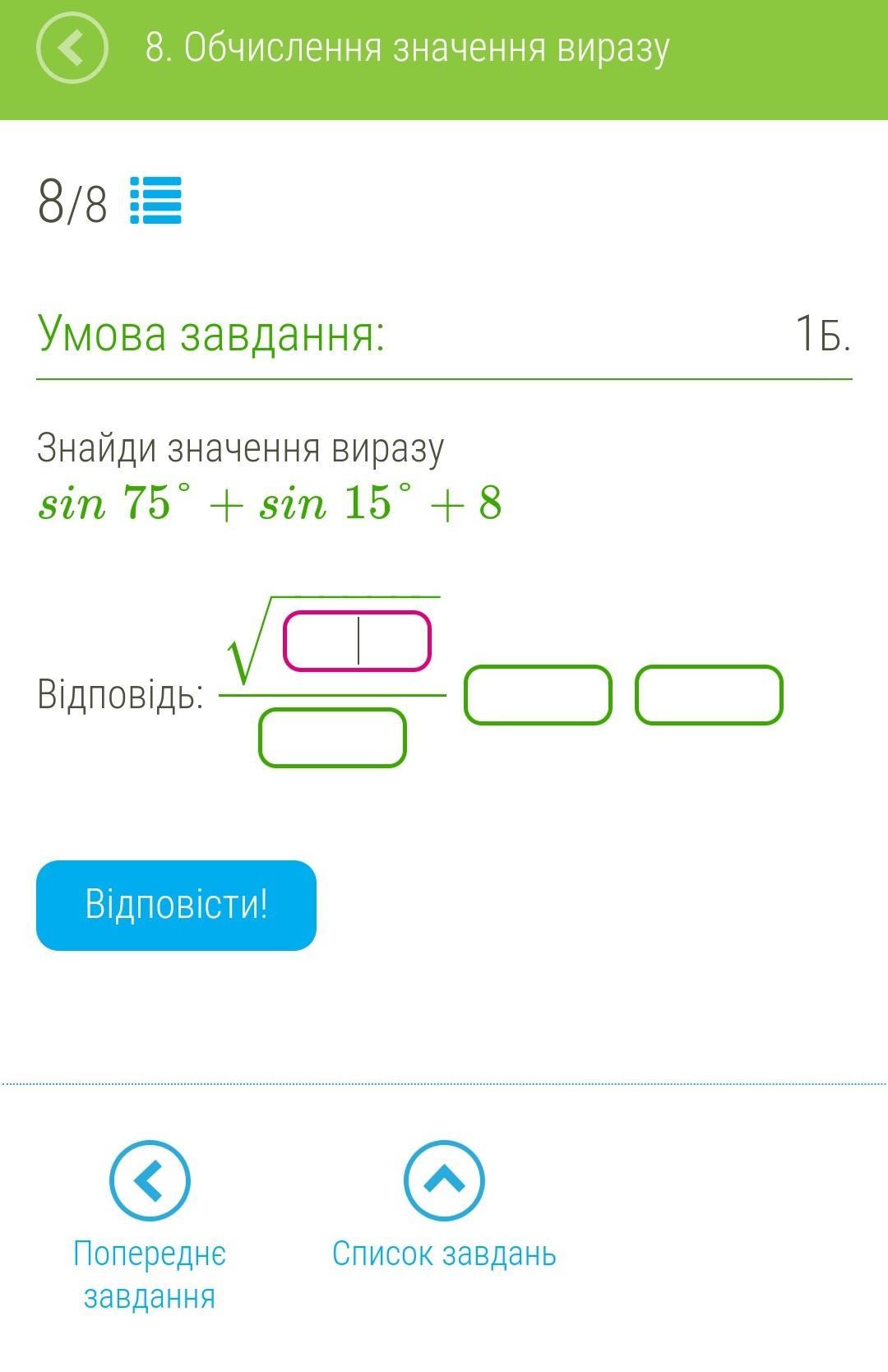 sin 75 + sin 15 = 2 sin (75 + 15 / 2) cos ( 75 - 15 / 2 ) = 2 sin (45) cos (30) =