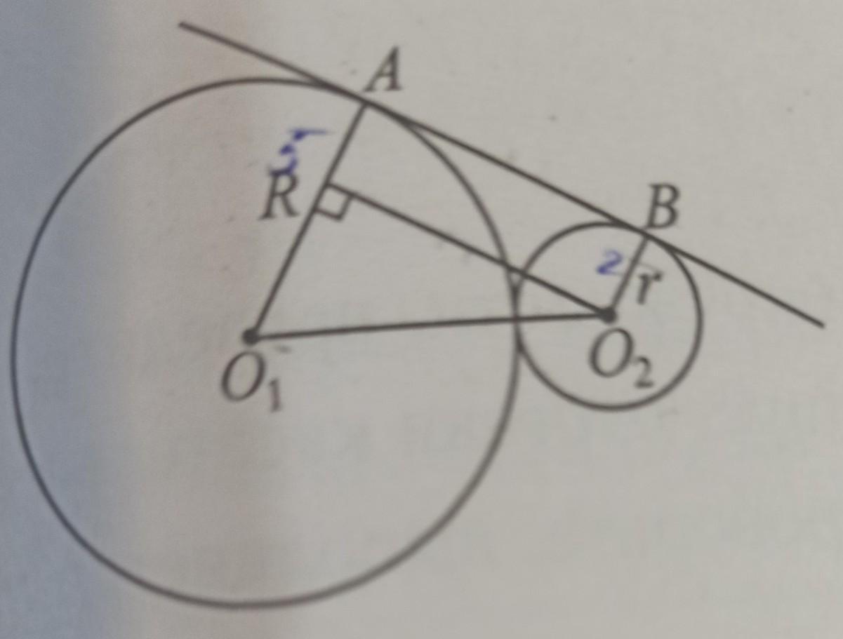 К двум окружностям касающимся внешним образом, проведена общая касательная(см фото) Найдите расстояние между точками касания и площадь O¹O²BA , если радиусы окружности R равно 5 см , r= 2 см Запишите решение . прошу помогите надо с объяснениями, заранее спасибо.