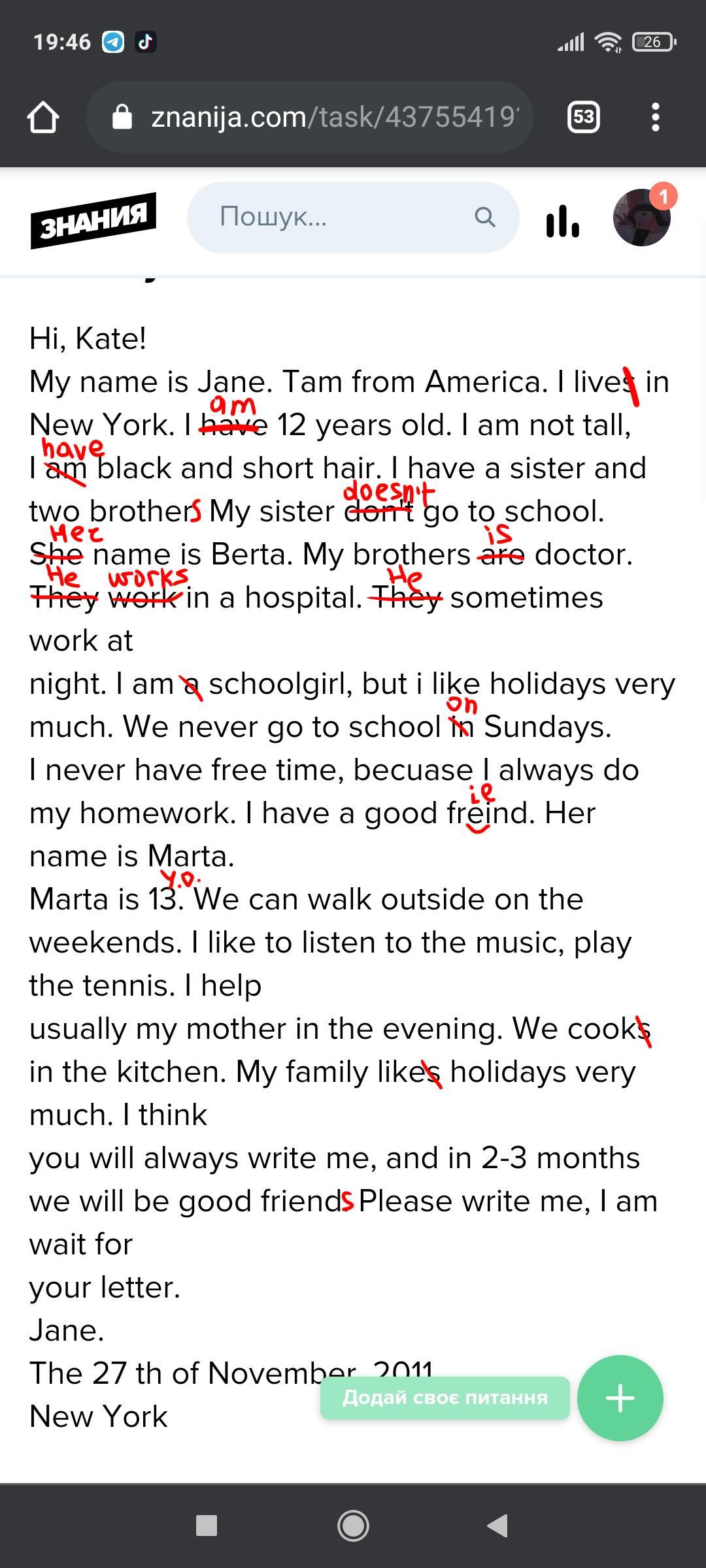 My name is Jane. Tam from America. I lives in New York. I have 12 years old. I am not tall,