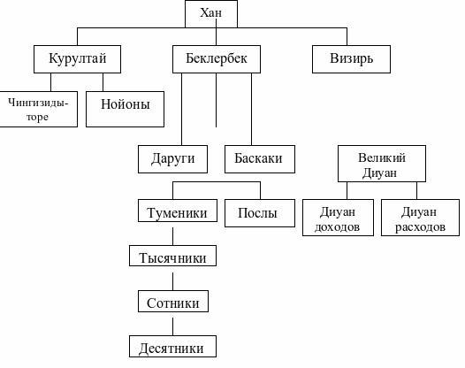 А) Начертите схему государственно-административного устройства Золотой Орды.