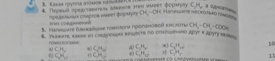 д)С3H8 → в)С4H10 → e)C5H12 → ж) С6Н14 — гомологи, так как общая формула С(n)H(2n+2), то есть отличаются на величину гомологической разности СН2
