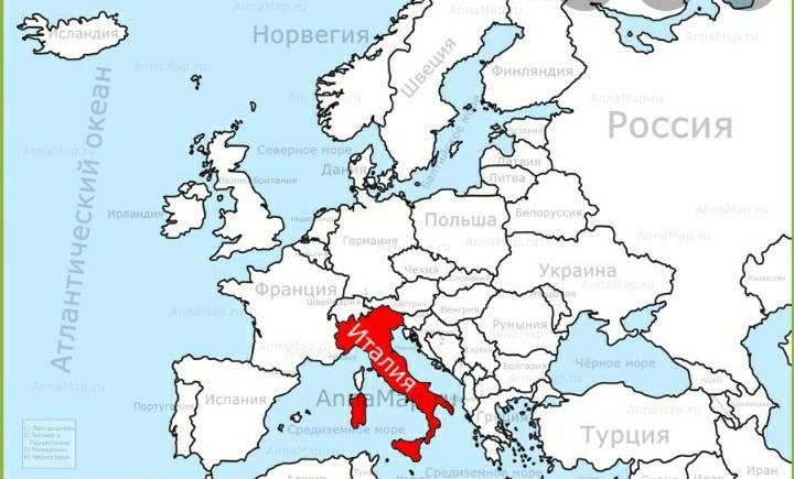 Государство на юге Европы, на Апеннинском полуострове. На севере граничит со Швейцарией и Австрией, на востоке - со Словенией, на северо-западе - с Францией. Омывается на западе Лигурийским и Тирренским морями, на востоке - Адриатическим, на юге - Ионическим и Средиземным морями.