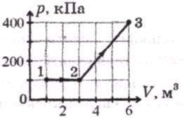 Определите работу газа в процессе 2-3 (см. рисунок) А) 500 кДж. Б) 950 кДж. В) 750 кДж. Г) 200 кДж. Д) 450 кДж