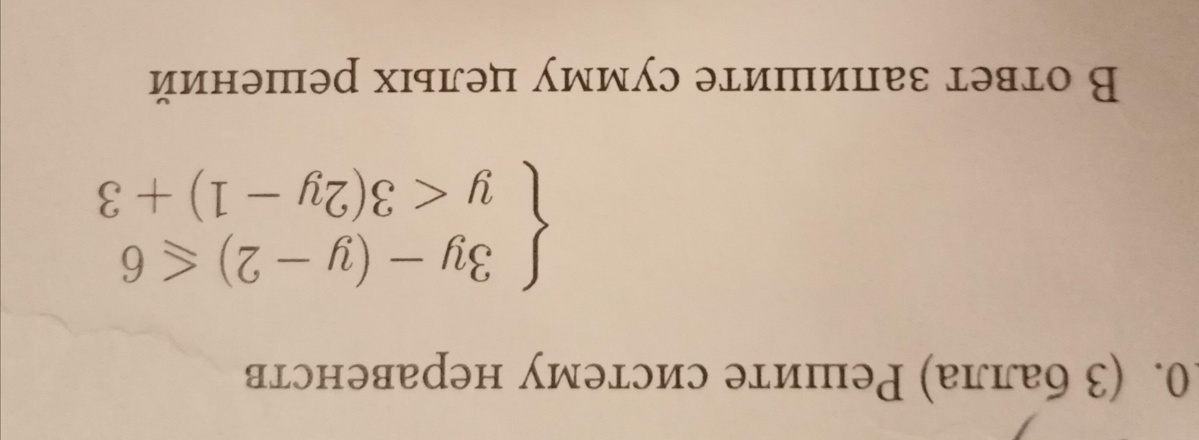 у<3(2y-1)+3| y<6y-3+3 | -5y<0 | y>0 целые решения системы 1 и 2. Их сумма равна 3.