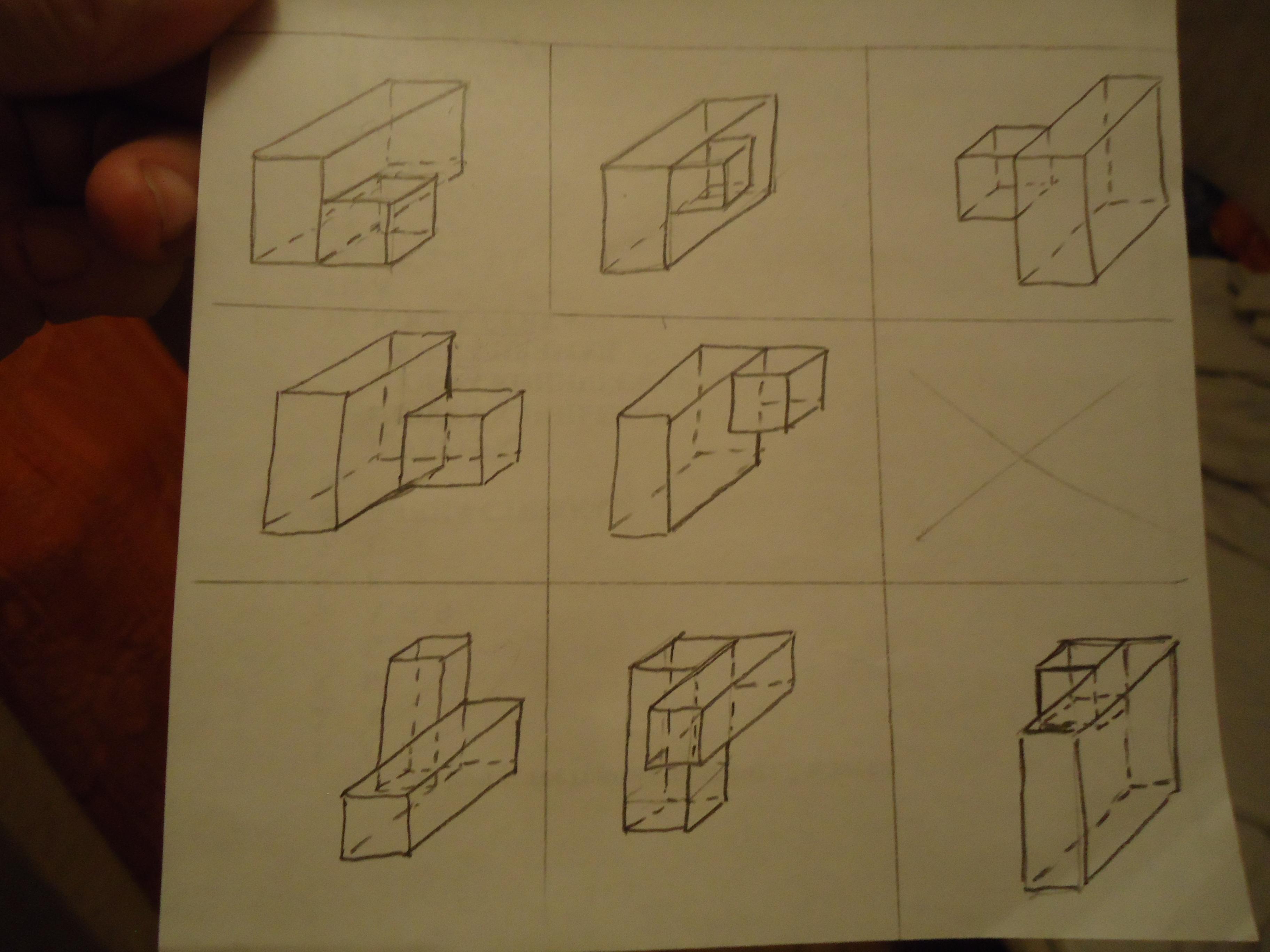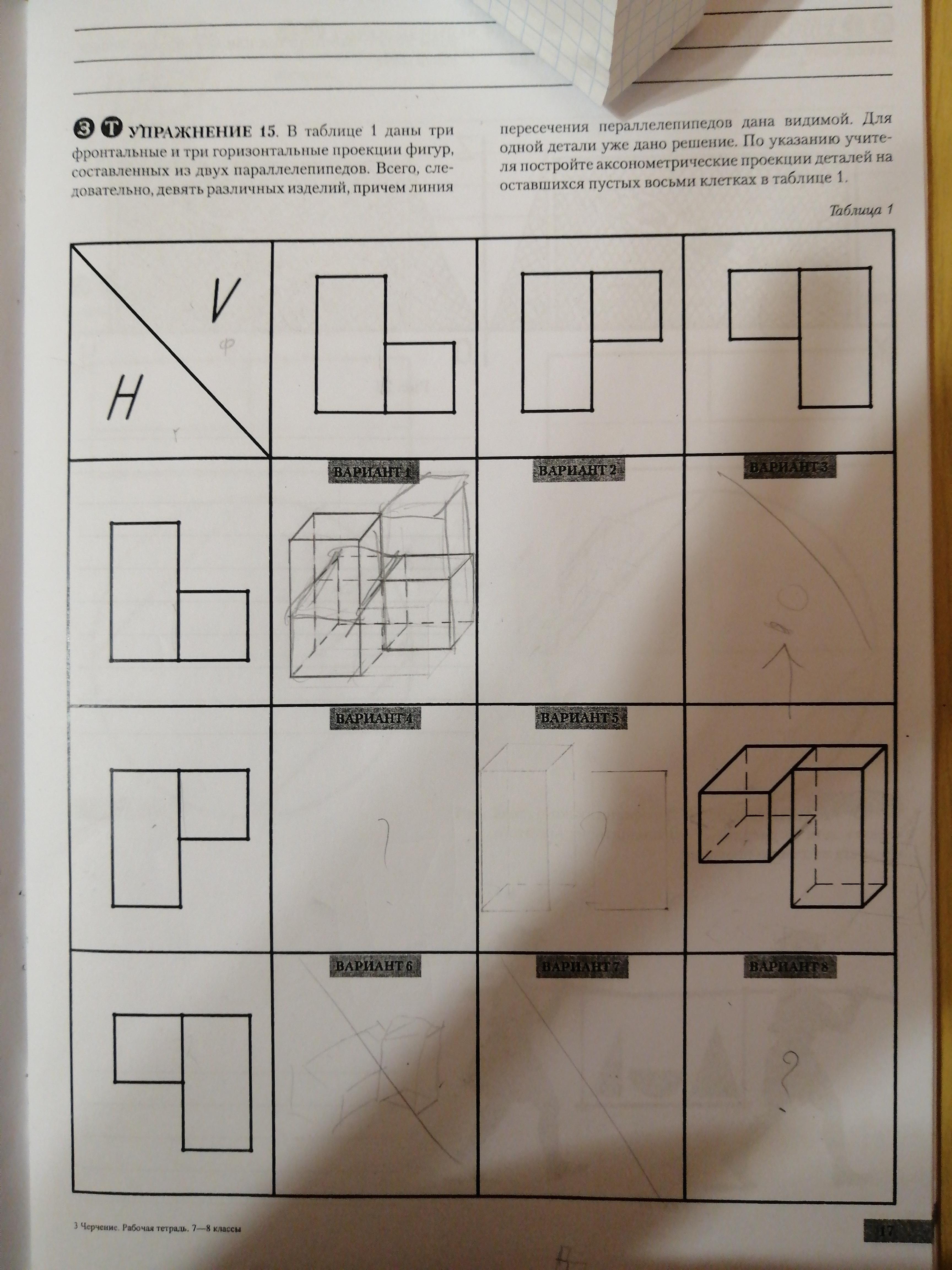 Изометрия пары параллелепипедов для восьми вариантов дана на фото. Изображении изометрии выполнено от руки.