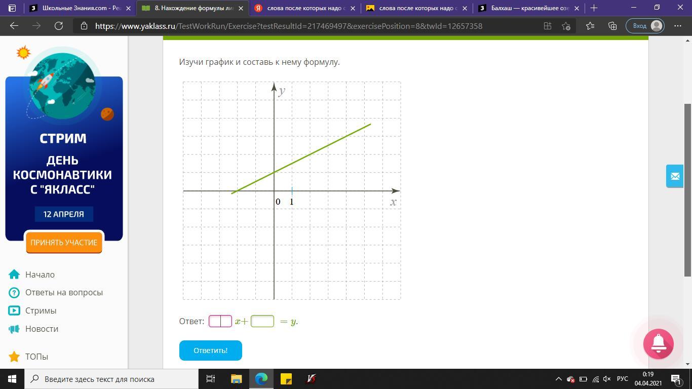 Прямая на рисунке проходит через точки (–2; 0) и (0; 1). Подставляя их в уравнение выше, получаем:
