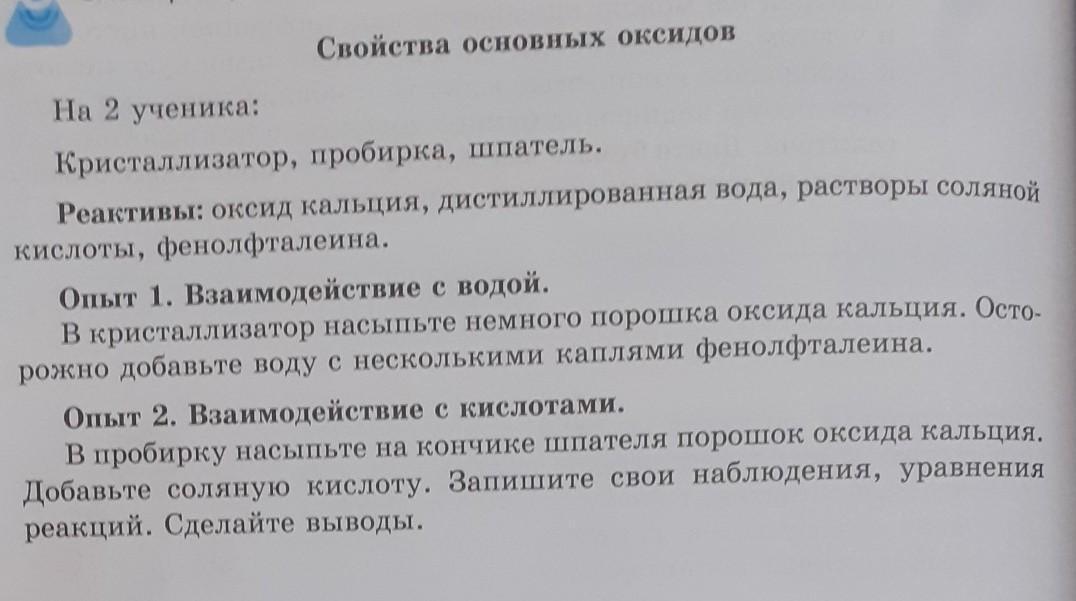 помогите срочно!!! записать только наблюдения, уравнения реакций и вывод!!