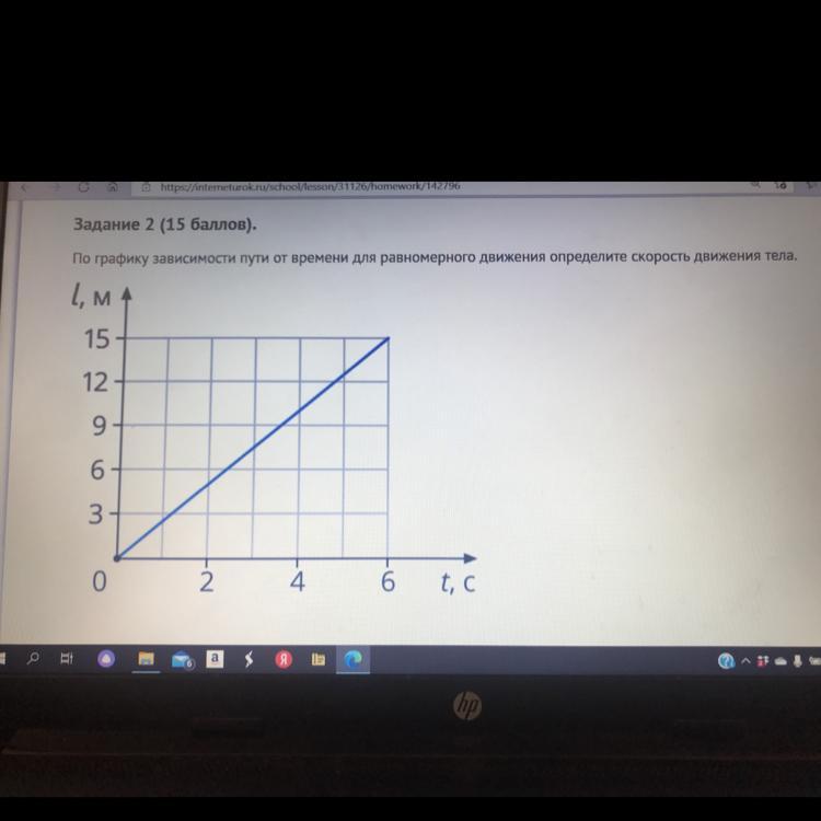 По графику зависимости пути от времени для равномерного движения определите скорость движения тела.