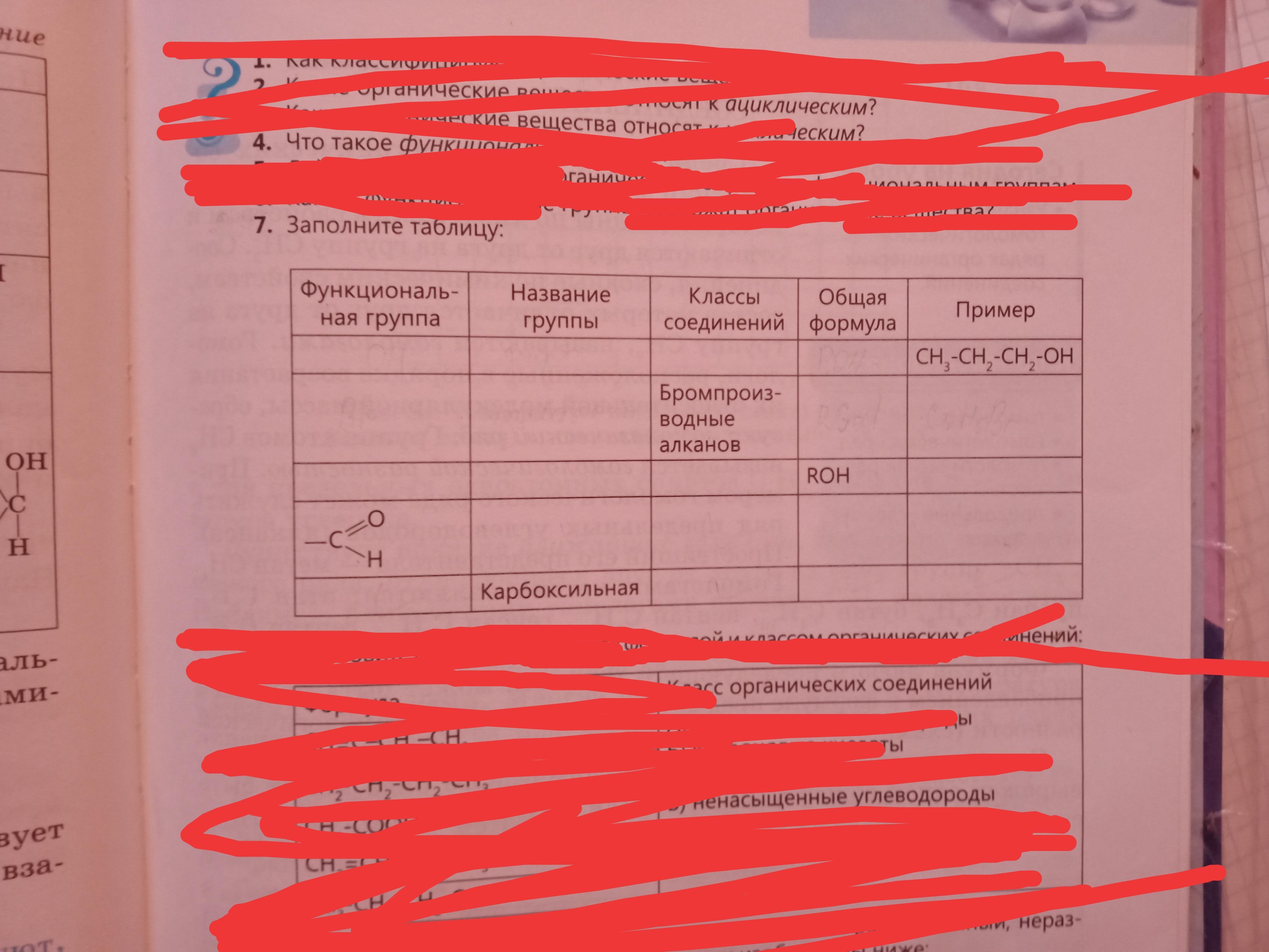 2строка: - Br, галогены, R-HAL, CH3-CH2-Br
