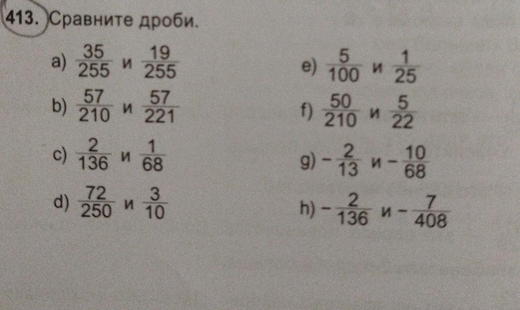 а)35/255больше 19//255 б) 57/210 больше 57/221; с) 2/136 = 1/38