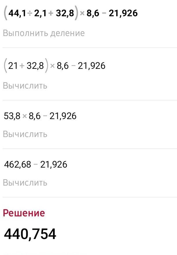 ответ (44,1:2,1+32,8)•8,6-21,926