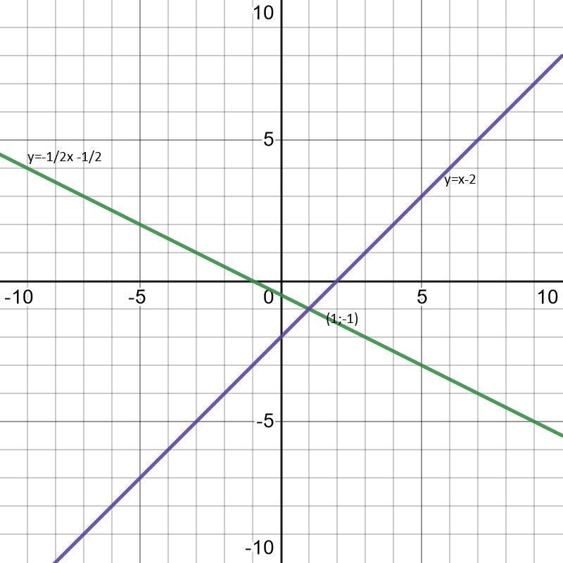 {x-2y=1 {2y=-x-1 {y=-0,5x+0,5