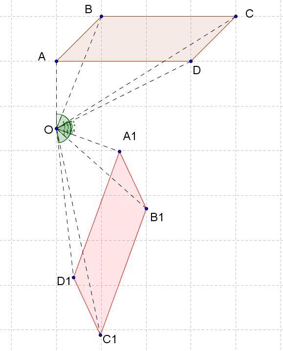 построить фигуру, полученную при повороте по часовой стрелке на 110° вокруг точки, не лежащей на данном параллелограмме