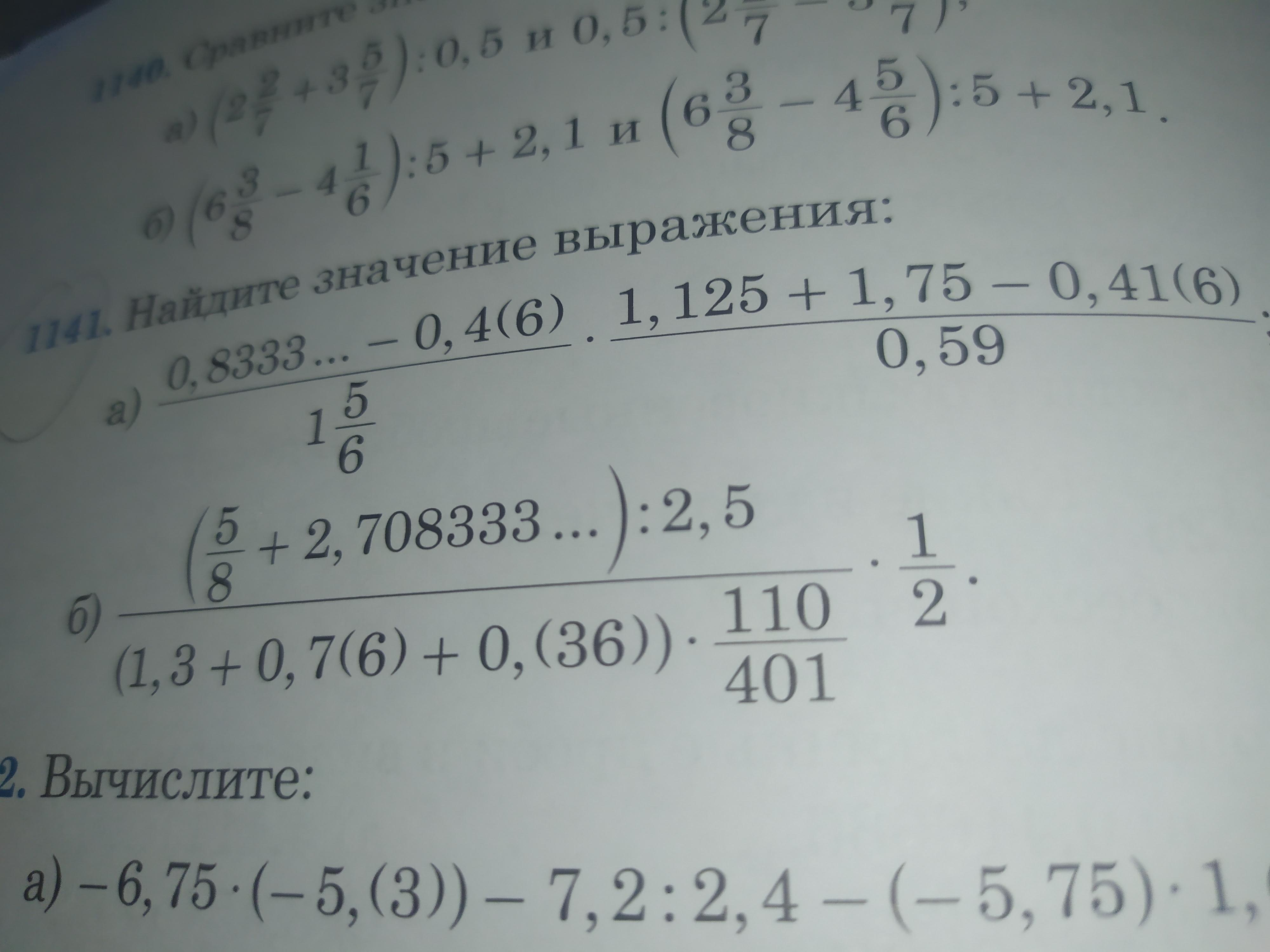 а) 1. (0,8333...-0,4(6))/(1 5/6) ·(1,125+1,75-0,41(6))/0,59