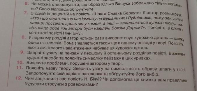12. Так, зацікавила, вона навчила мене будувати стосунки з ровесниками, не потрібно ставити себе вище когось, потрібно поважати одне одного. В ситуації з Юльком і Славком, винні вони обидва. Юлько- спровокував, а Славко піддався провокації.