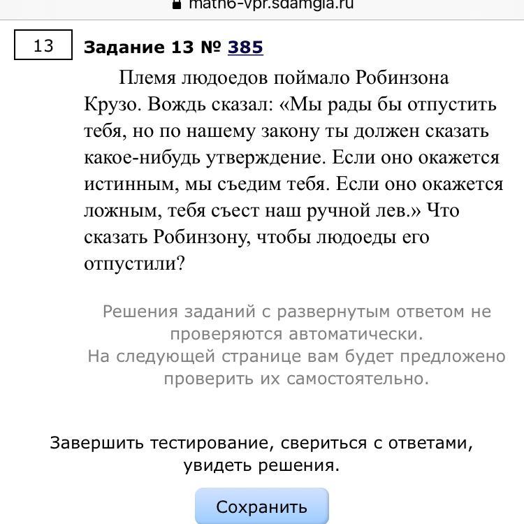 потому что если правильное утверждение то седят людоеды а если неправильное то съест лев
