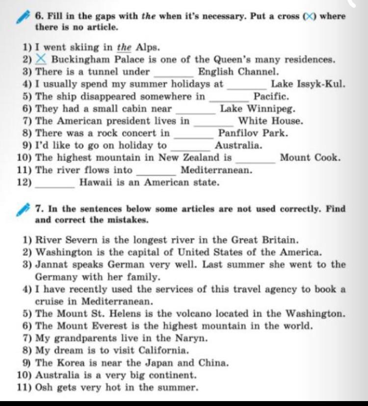 5. The Mount St. Helens is (×the×) volcano located in the Washington. (İs a volcano...)