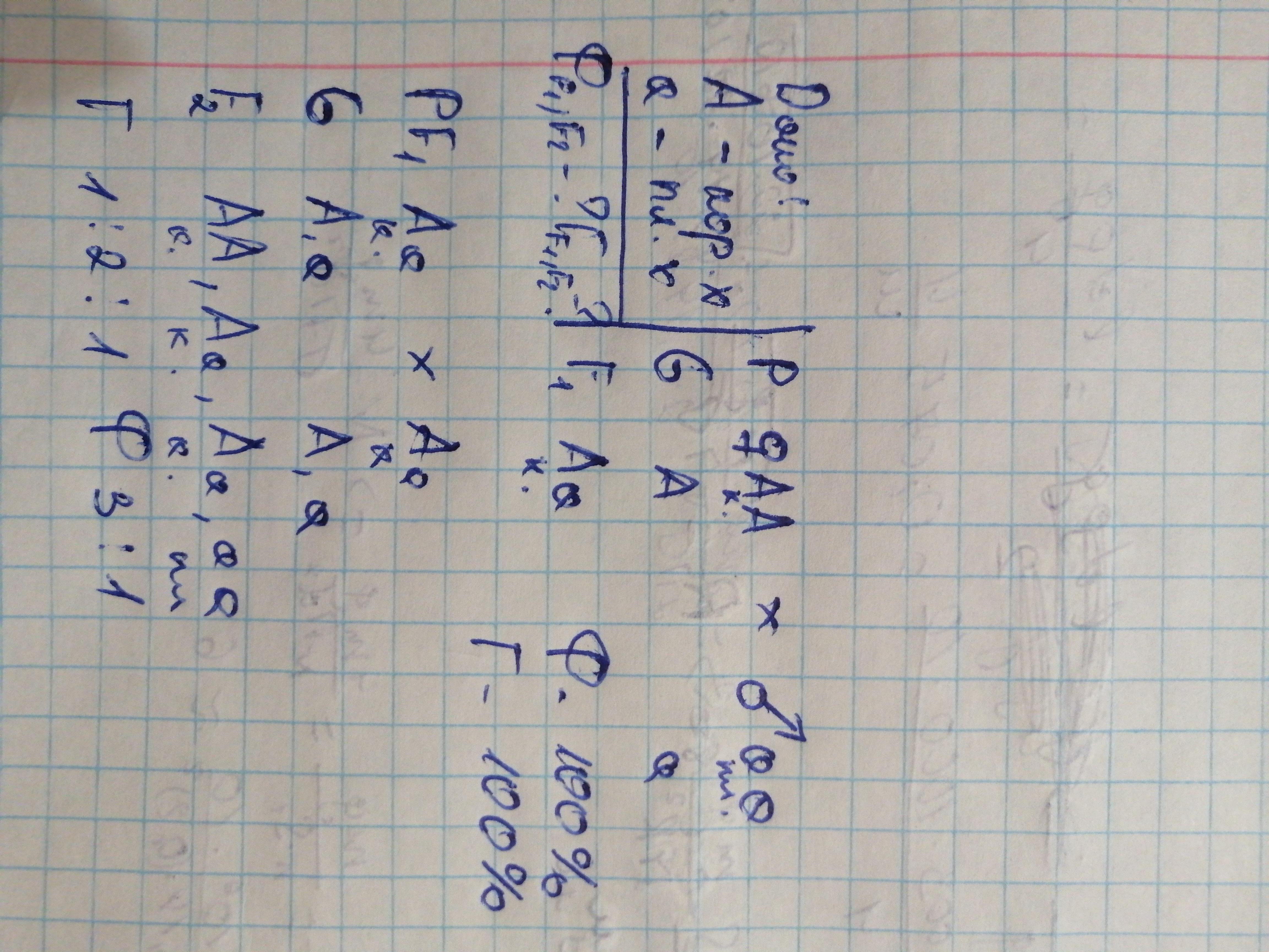 Ответ: F1 всі нащадки одноманітні за фенотипом і генотипом. (всі коричневі) F2 75% - коричневих, 25%- платинових