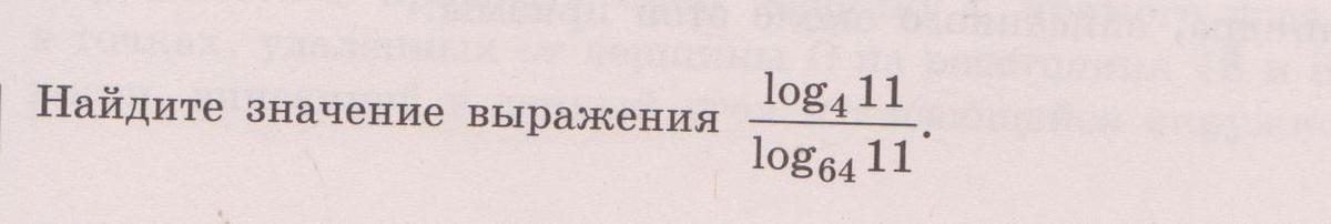 log[4] (11) / log[64] (11) = ln(11)/ln(4) / ln(11)/ln(64) = ln(64)/ln(4)= 3