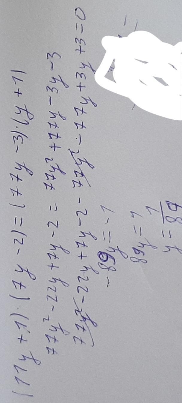 СРОЧНО!!! Помогите пожалуйста решить уравнение (11y+1)⋅(7y−2)=(77y−3)(y+1). (Ответ должен быть дробным)