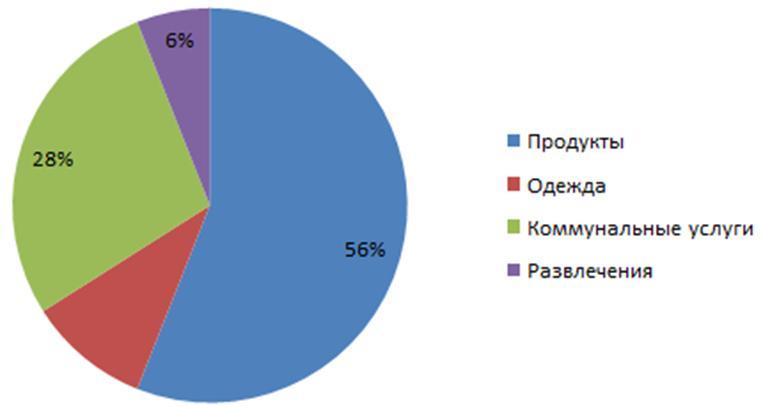 На диаграмме представлен отчет о тратах семьи за прошедший месяц. Известно, что на коммунальные услуги было потрачено 5040 рублей. По данным диаграммы определите, сколько рублей потратила семья на одежду. Вычисления запишите в столбик.