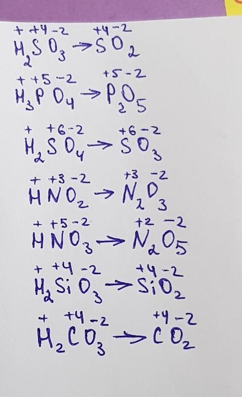Написать степень окисления элементов следующих веществ и дать им соответственные им оксиды