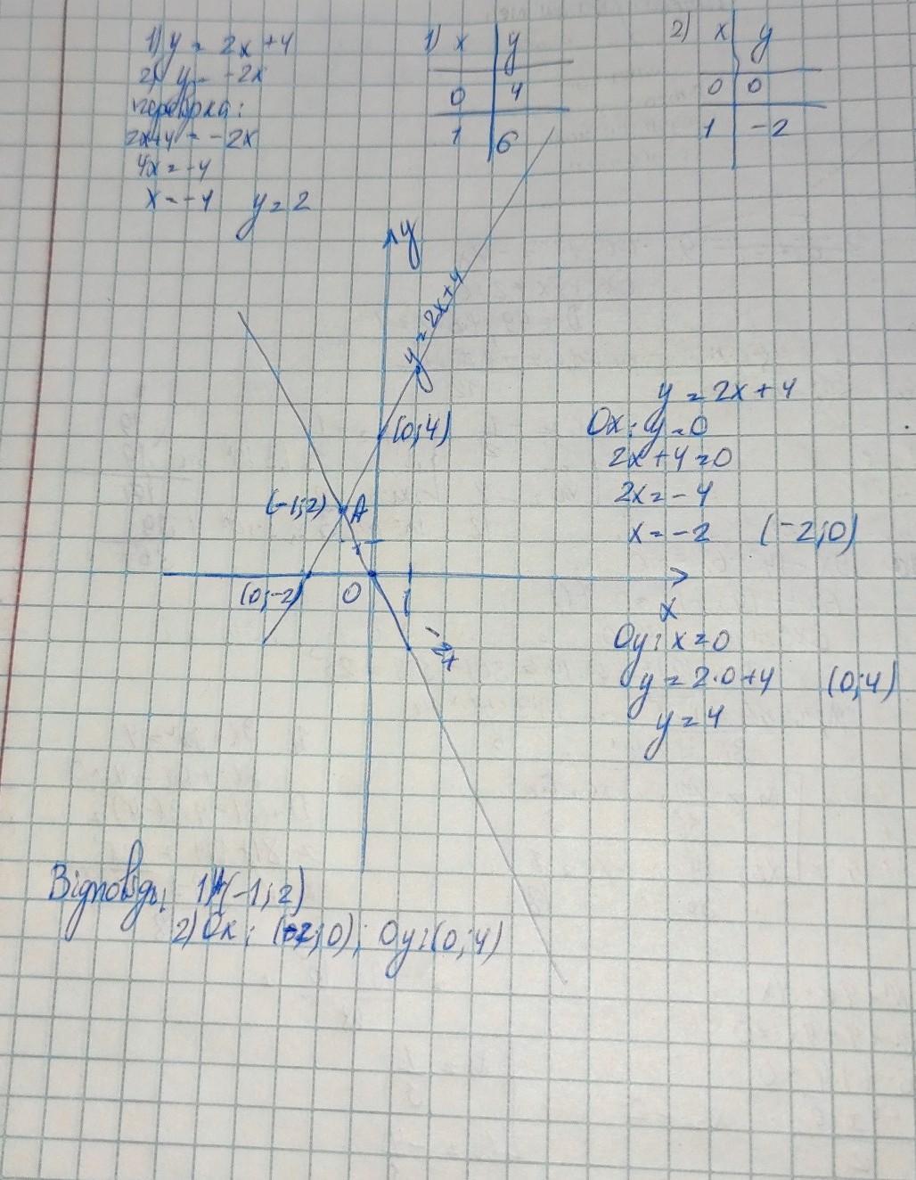 у = -2х; записати координати точки перетину графіків цих функцій.