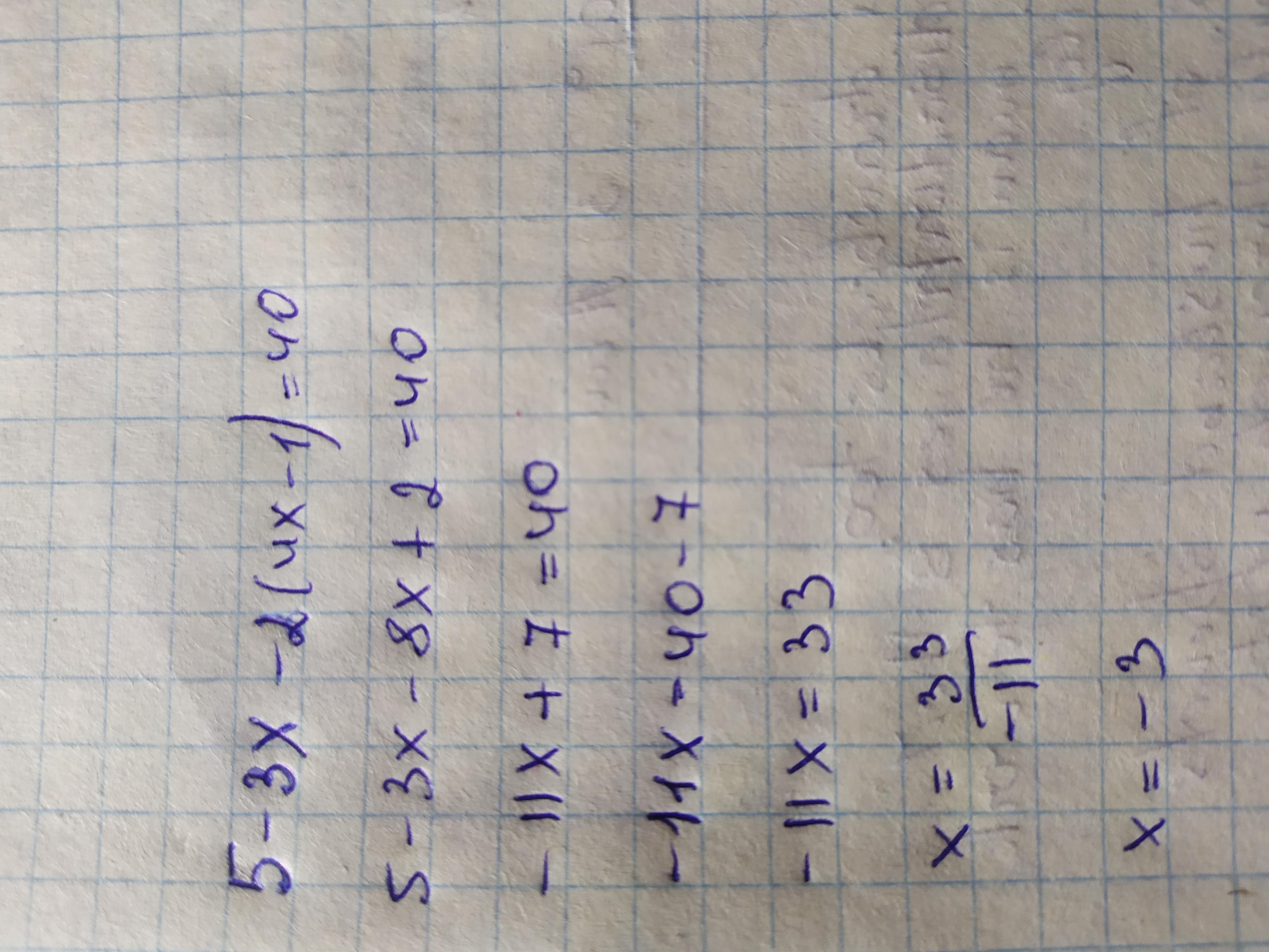 5-3х-8х+2=40 ; -11х = 33 ; х= 33 :11 х = 3