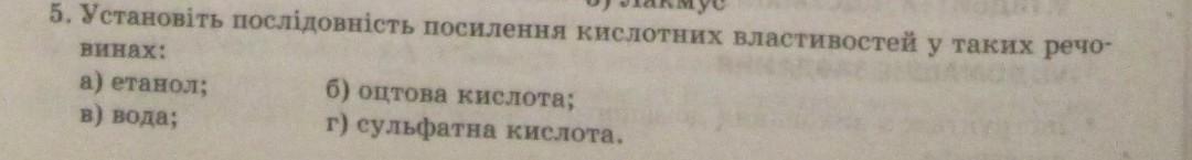 Установіть послідовність посилення кислотних властивостей у таких речовинах: