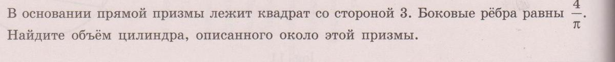 об ем цилиндра V=S*h=pi*a^2*h/2=pi*3^2*4/2pi=18