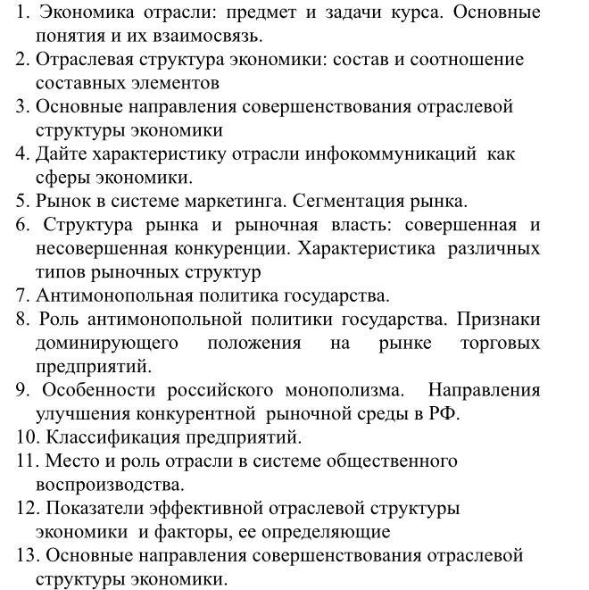 1) Предмет "Экономия отрасли" имеет ввиду изучение общих закономерностей, развитие конкретной отрасли на территории страны и её регионов и условий, обеспечивающее достижение наилучших результатов с учётом спроса товаров и услуг при оптимальном использовании производства и получение всей прибыли.
