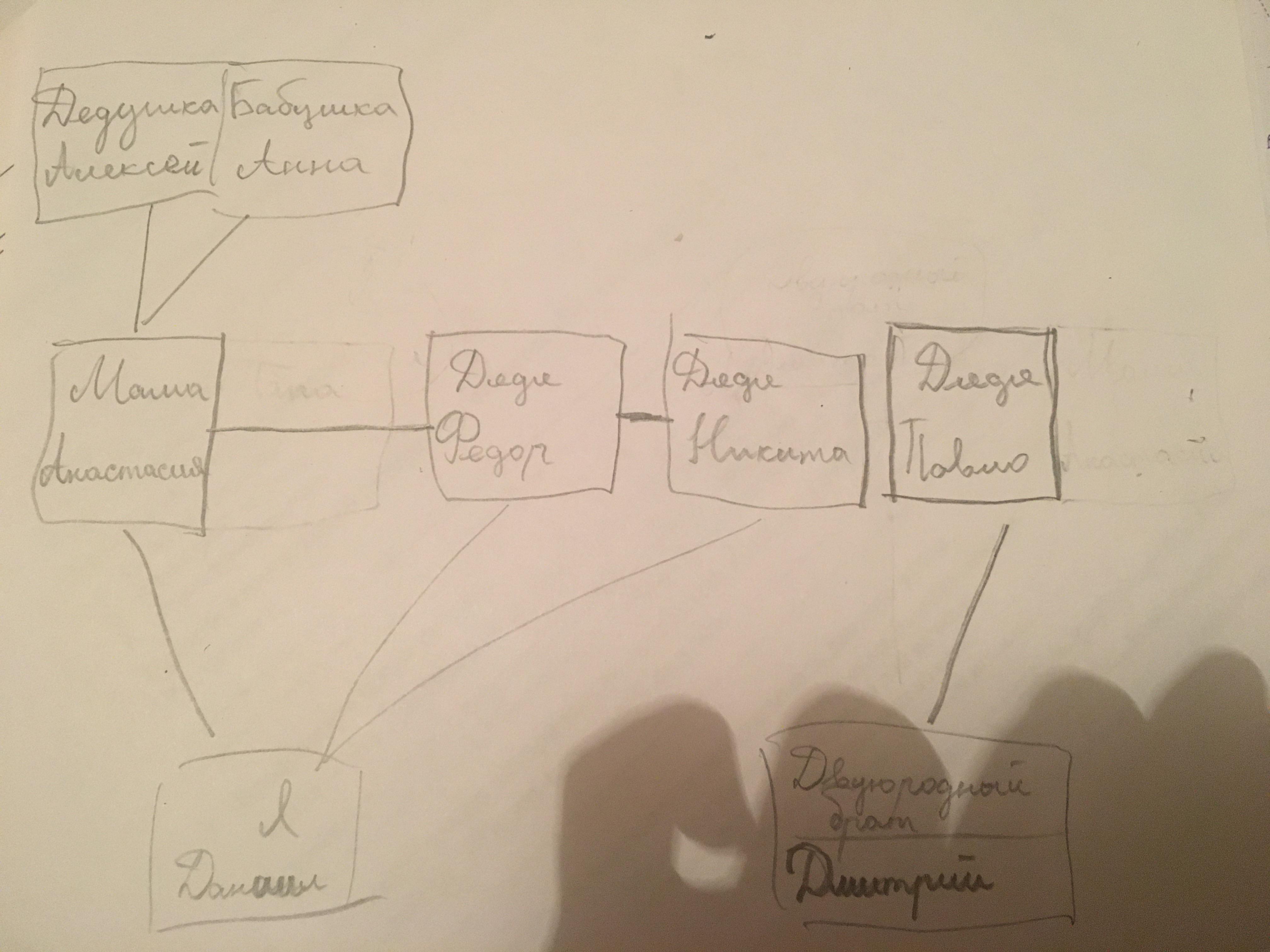 Родственные связи можно представить в виде схемы. Например, на схеме ниже представлена семья