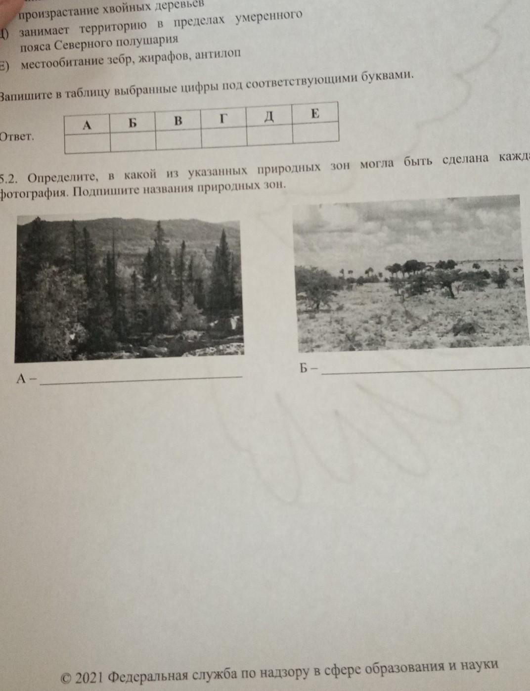 Определите в какой из указанных природных зон могла быть сделана Каждая фотография подпишите названия природных зон