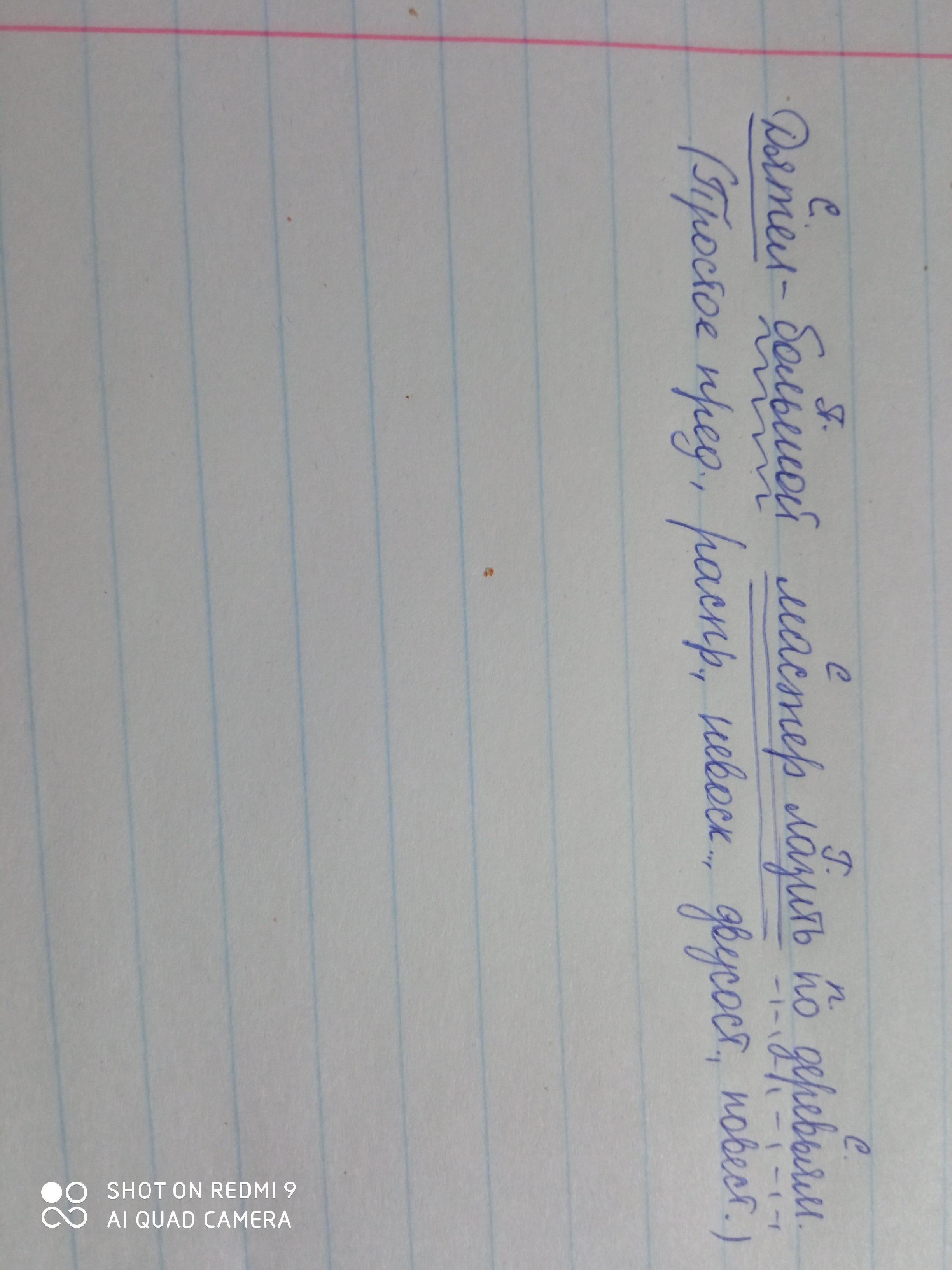 Дятел(подлеж) - большой(определение) мастер лазить (сказ) по деревьям (дополнение).