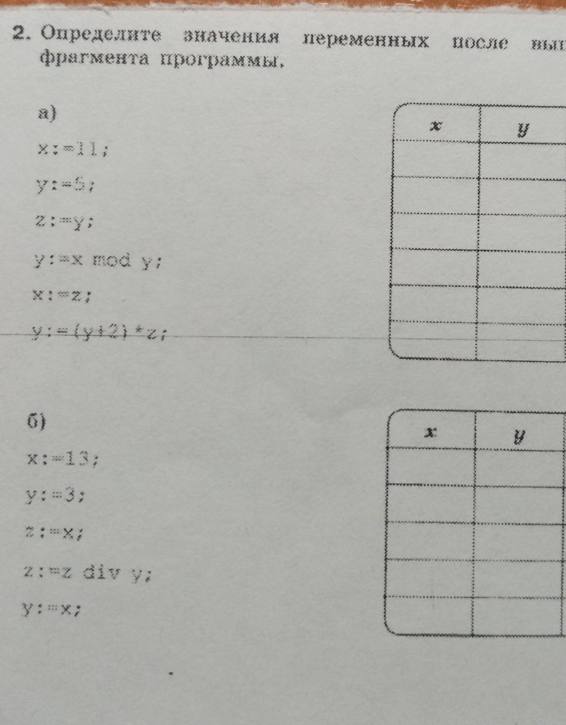 определите значения переменных после выполнения фрагмента программы. Мне не надо ответы к этим табличкам мне решение как получили???