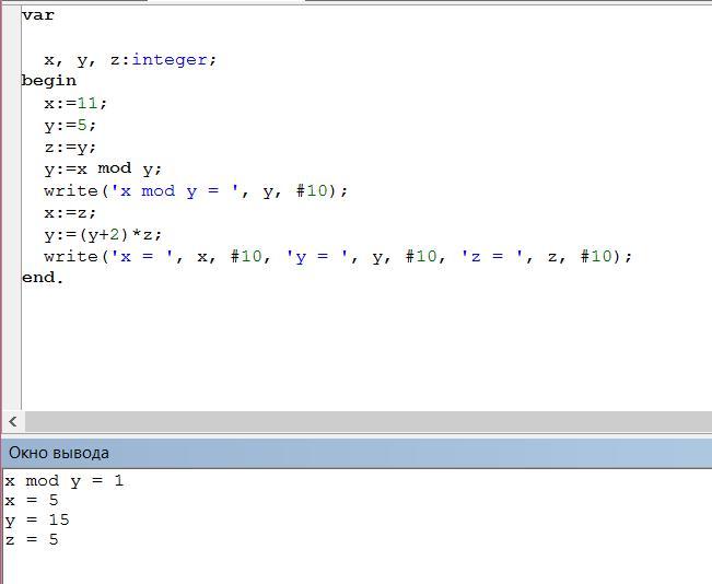 Таким образом после выполнения фрагмента программы в переменных хранятся такие значения: