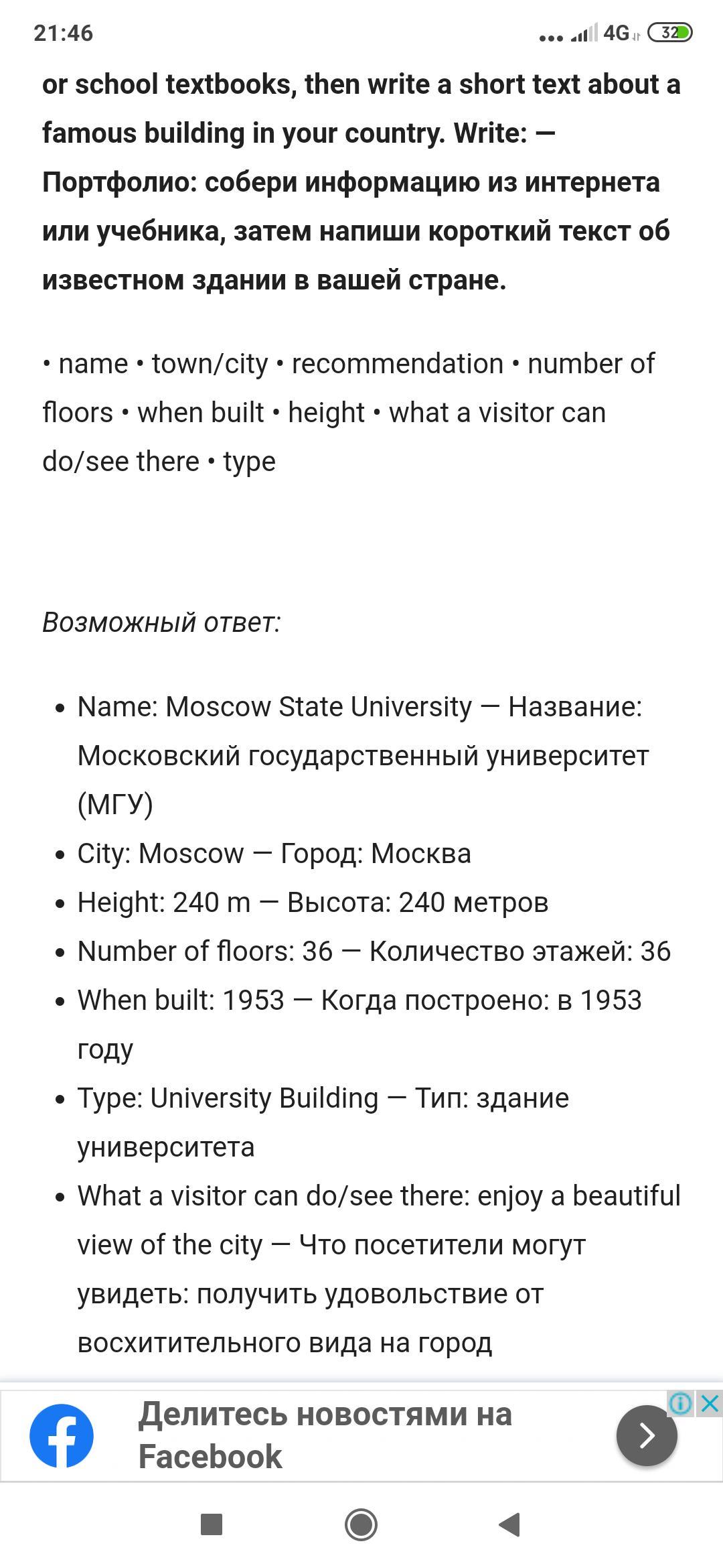 Начинаем с названия, город, высота, количество этажей, когда построено, тип здания, что могут увидеть посетители.