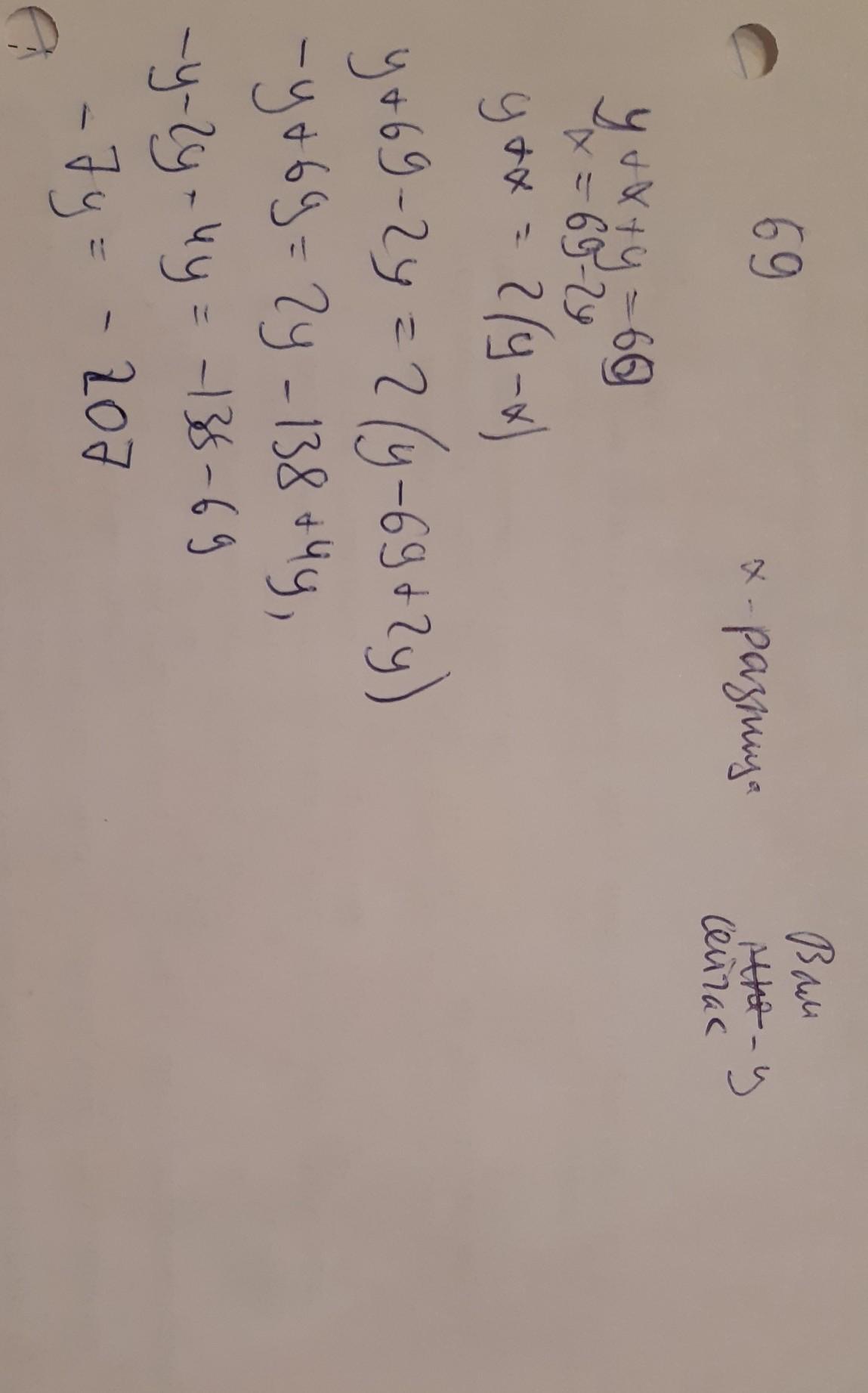 Нам обоим вместе 69 лет. Сейчас мне вдвое больше лет, чем было Вам тогда, когда мне было столько лет, сколько Вам сейчас. Сколько мне лет и сколько Вам?