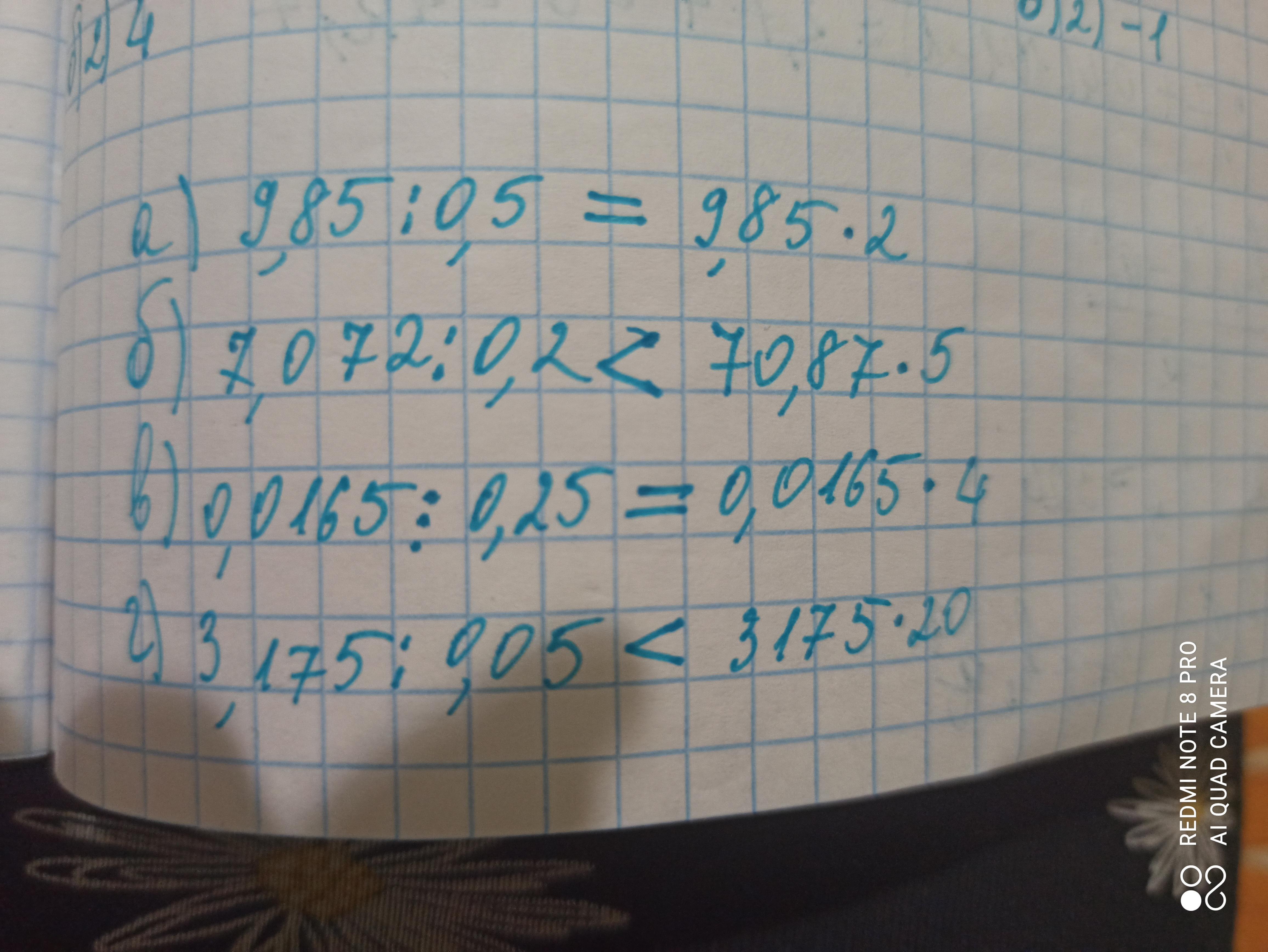 поривняйте значення виразив а)9,85:0,5 і 9,85*2 б)7,072:0,2 і 70,87*5 в)0,0165:0,25 і 0,0165*4 г)3,175:0,05 і 3175*20