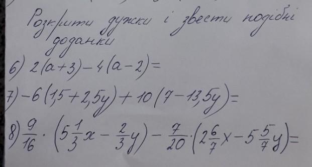 В першому та другому розкриваємо дужки та зводимо подібні доданки у третьому розкриваємо дужки скорочуємо та зводимо подібні доданки