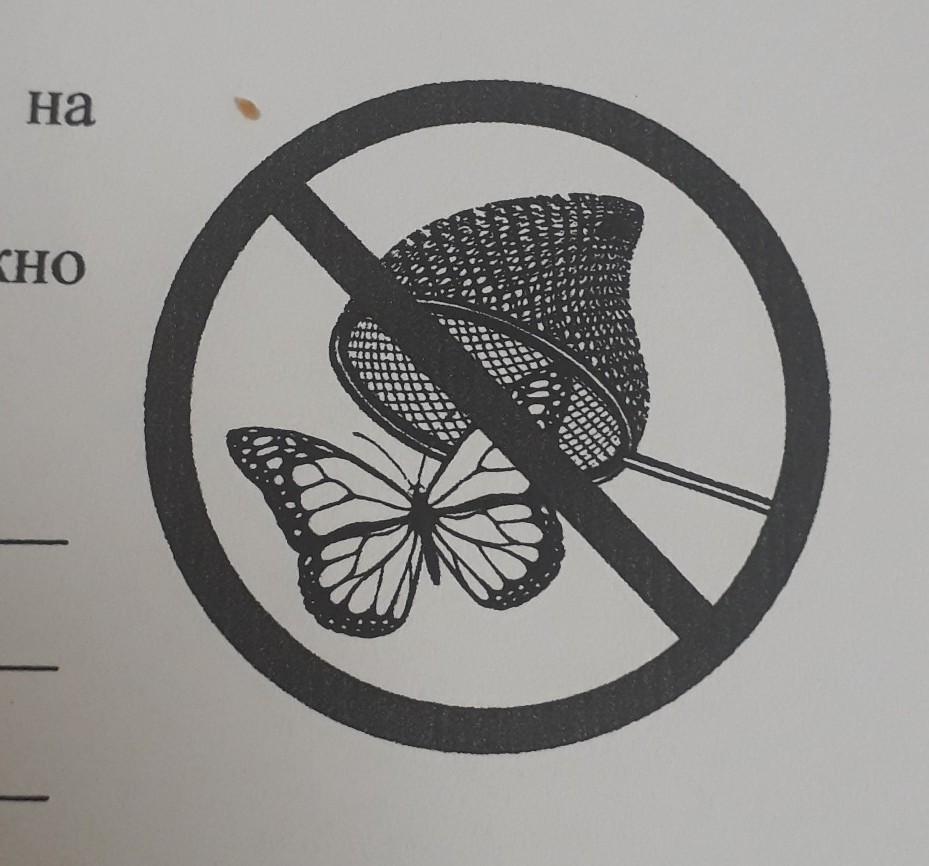 Это запрет на ловлю насекомых. Можно встретить в заповедниках, заказниках, национальных природных парках.