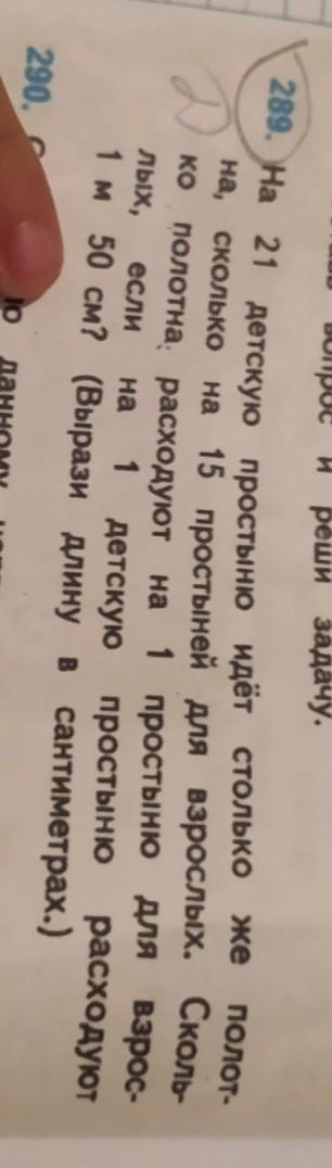 2) 21 · 150 = 3150 см - столько полотна идёт на 21 детскую простыню.