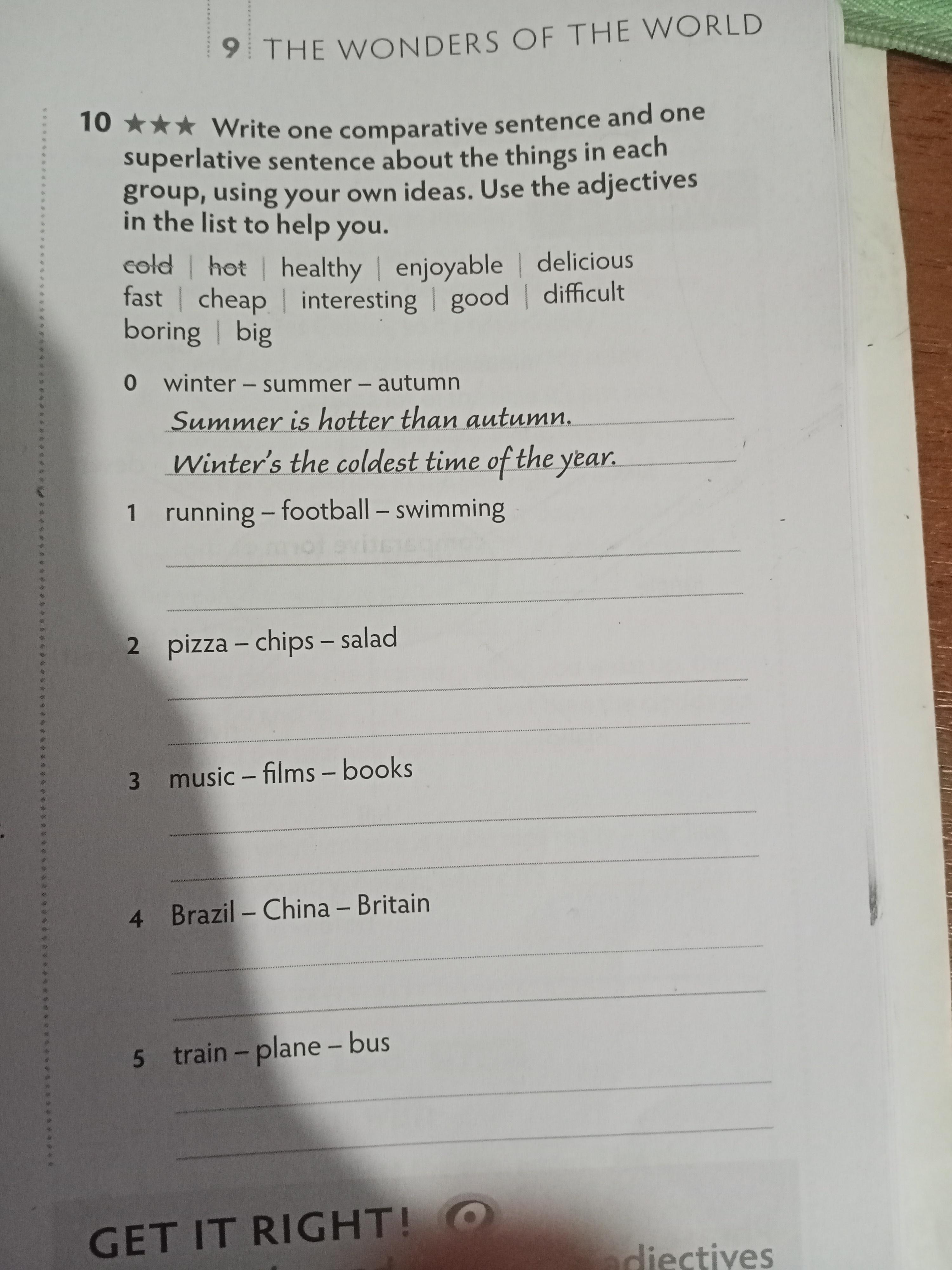 3. Music is more enjoyable than films. Books is the most interesting kind of a hobby.