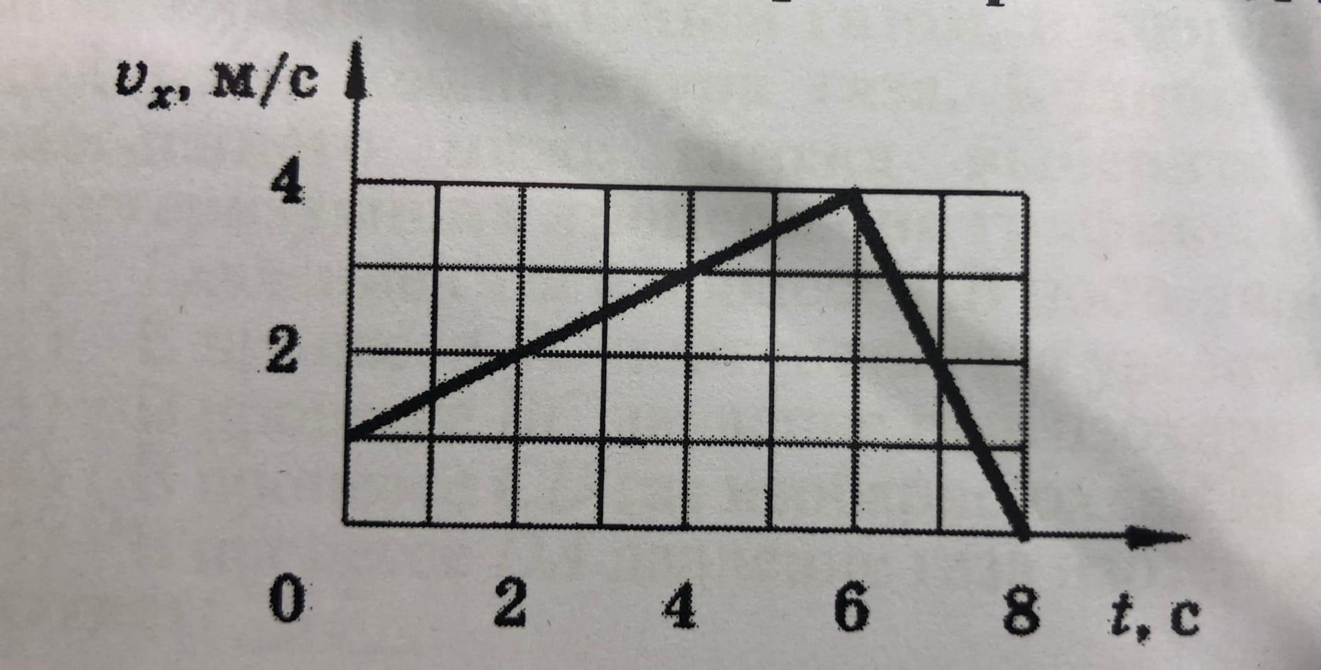 По графику зависимости скорости от времени путь численно равен площади под графиком. В интервале от 2 до 6 секунд фигура под графиком это трапеция. От 6 до 8 секунд - треугольник.